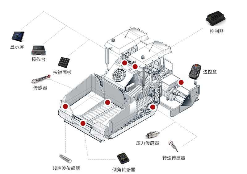 BB贝博艾弗森智能摊铺机解决方案整合了感知技术、自动控制系统和数据分析算法,实现了摊铺机高度智能化操作。通过实时获取路面信息和实时调整施工参数,使摊铺机操作更加精准、高效和可靠。